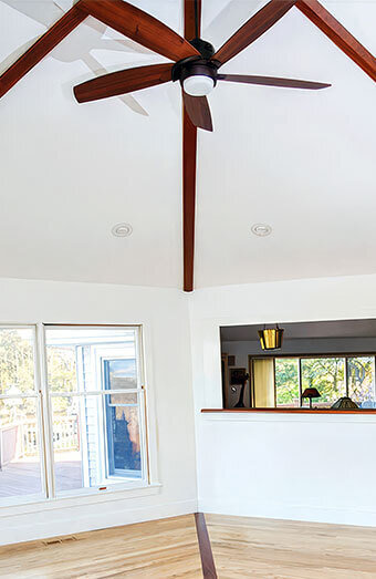 Installation of whisper-quiet, energy-efficient DC motor fans with multiple speed settings and reverse modes for year-round comfort and energy savings.